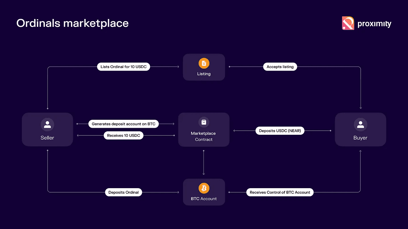 In this scenario, we are dealing with a trade between a seller whose asset (Ordinal) is on Bitcoin and a buyer whose asset ($USDC) is on NEAR; but this can be generalized to any asset on any chain.